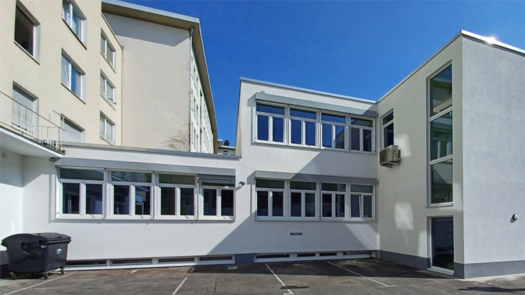 Das Erdgeschoss des zur Logenstraße gelegenen Vorderhauses wurde zuletzt als Postamt genutzt und wird im Zuge der Nutzungsänderung künftig als öffentlich zugänglicher Beratungsbereich dienen. Im hinteren zum Innenhof gelegenen Teil war bisher eine Großbäckerei ansässig, hier ist im Erd- u. Obergeschoss der überwiegend nicht-öffentliche Verwaltungsbereich entstanden.