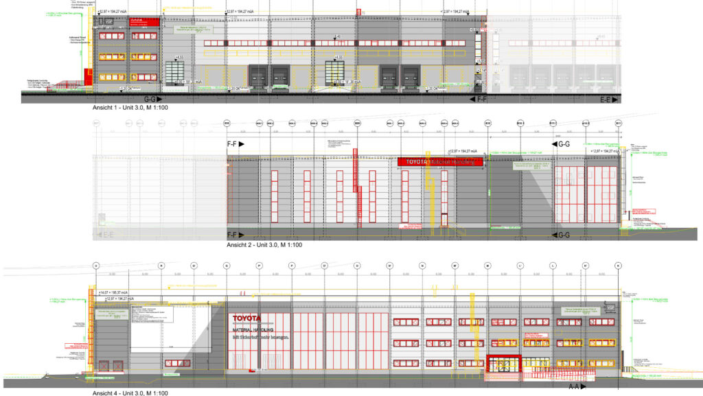 Die Industriearchitektur folgt einer klaren Logik: robuste Strukturen, effiziente Wegeführungen, intelligente Energiekonzepte und eine Atmosphäre, die die Toyota-Philosophie und das Verständnis von Qualität und Prozesskultur räumlich übersetzt. Planung und Umsetzung erfolgten in enger Abstimmung mit allen beteiligten Fachdisziplinen – zielgerichtet, transparent und mit dem Anspruch, ein Gebäude zu schaffen, das den operativen Alltag stärkt und gleichzeitig architektonische Haltung zeigt. So ist ein Standort entstanden, der nicht nur den aktuellen Anforderungen gerecht wird, sondern als zukunftsfähige Plattform für Wachstum, Innovation und gelebte Unternehmenskultur dient.